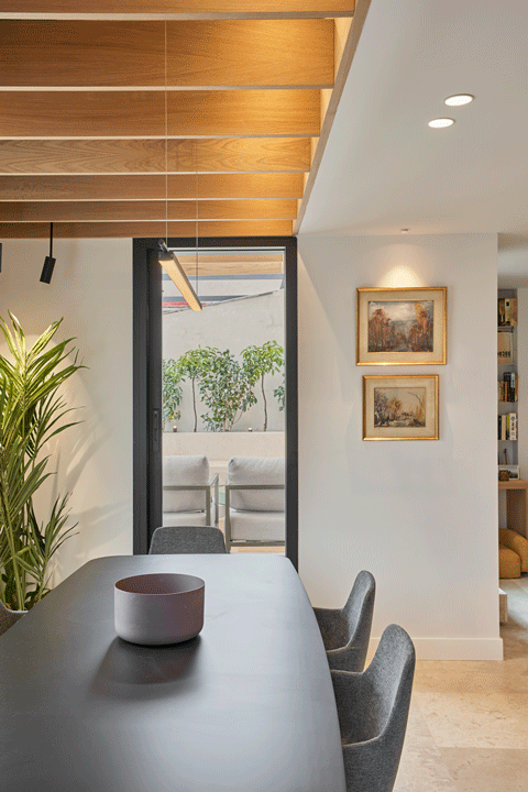 El punto de partida para este ático con dos terrazas fue recuperar la incorporación de las mismas, resultado de una excesiva compartimentación espacil y de una falta de proyección al exterior de la vivienda previamente, que negaba su mayor atractivo.